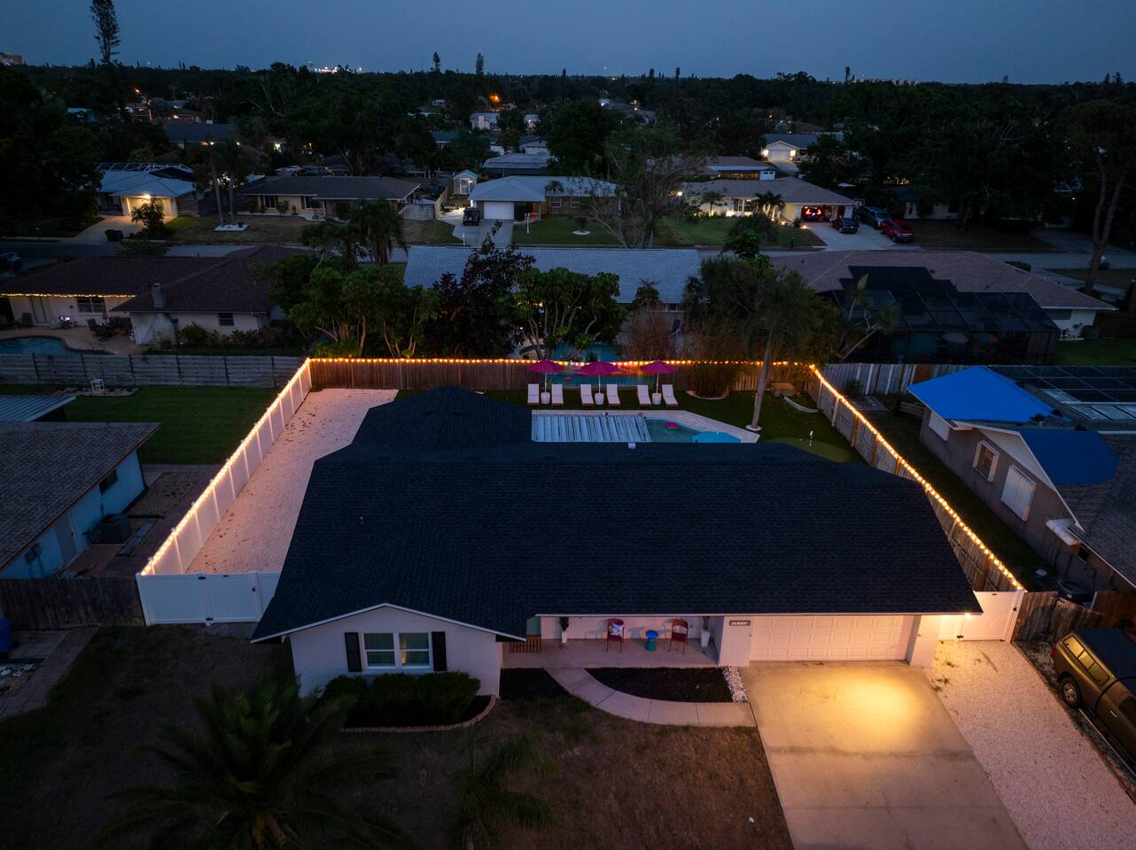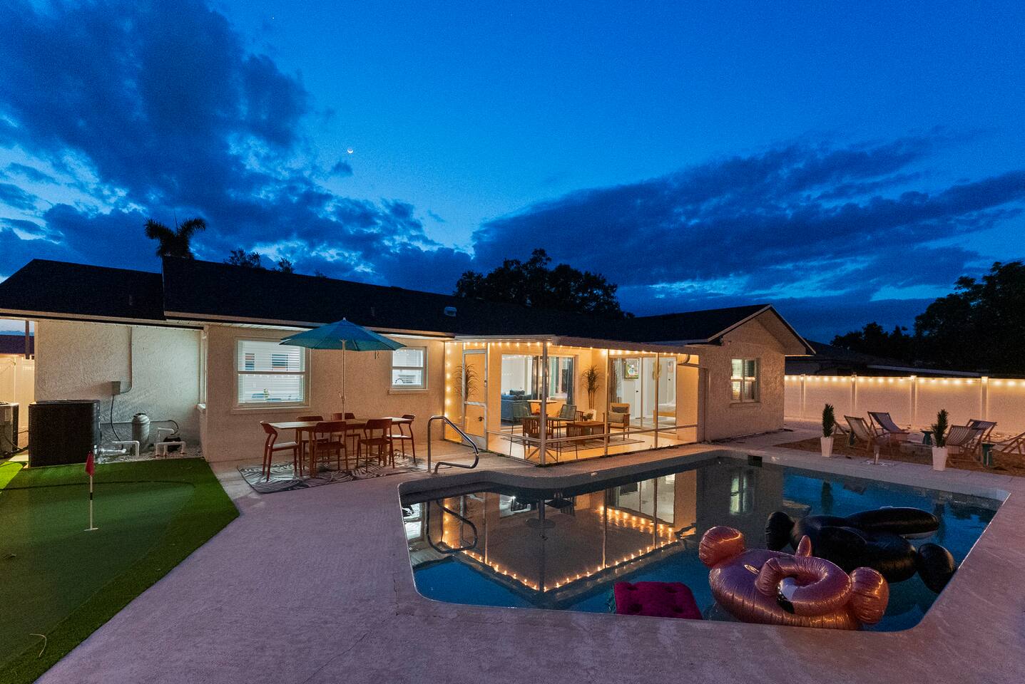 Relax in your private heated pool, master your putt on the backyard green, then challenge friends in the full arcade. ⭐ 3 spacious bedrooms, 5-star beds ⭐ Pool toys, floats & night lighting ⭐ Arcade: air-hockey, retro games, putting mat ⭐ Gas BBQ, fire-pit seating & outdoor dining ⭐ Nespresso coffee bar with starter pods ⭐ Minutes to Gulf beaches, IMG Academy & top golf. Groceries, dining & cafés all within 5-10 minutes. Book today and start your flamingo-worthy getaway!