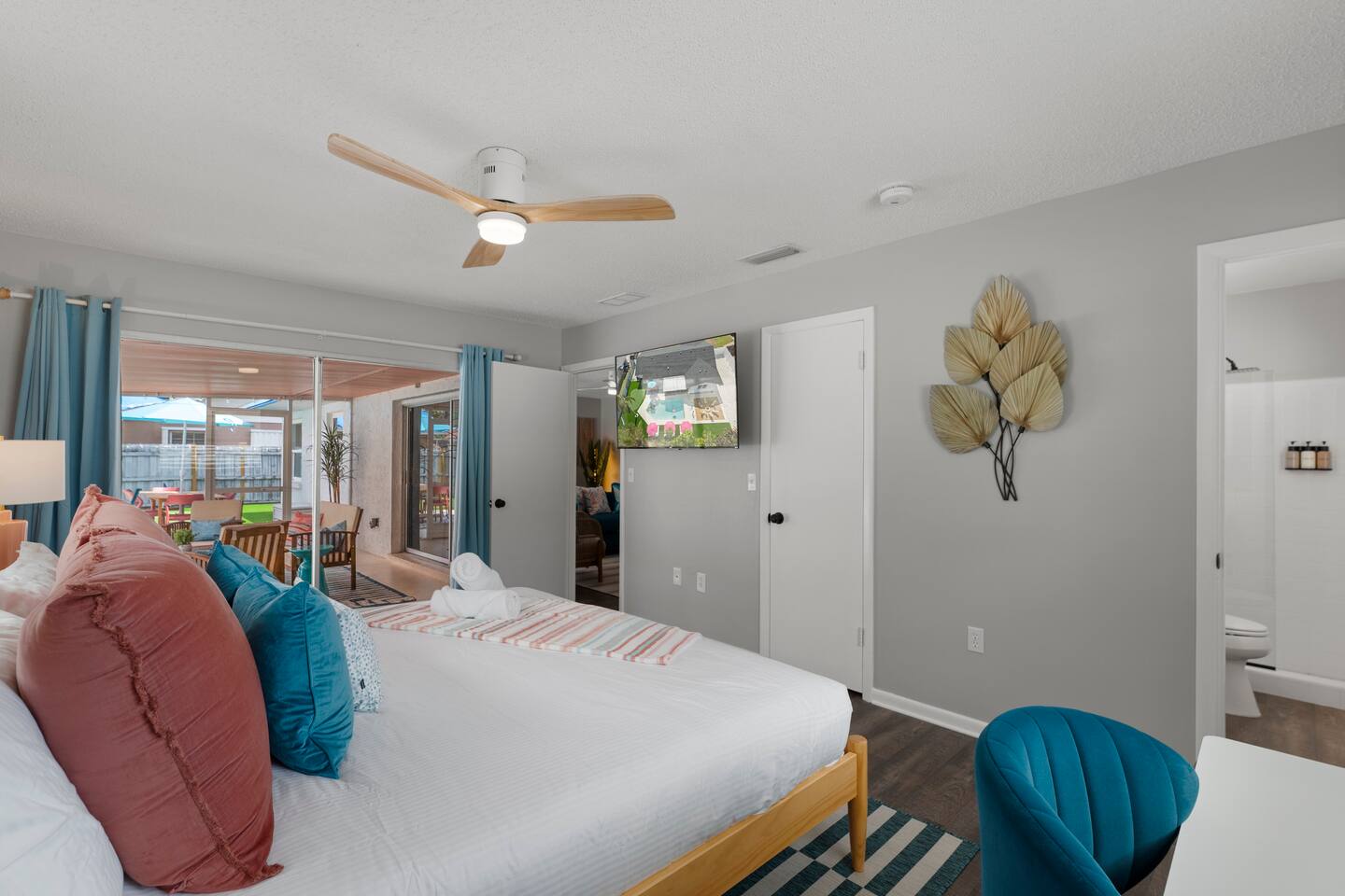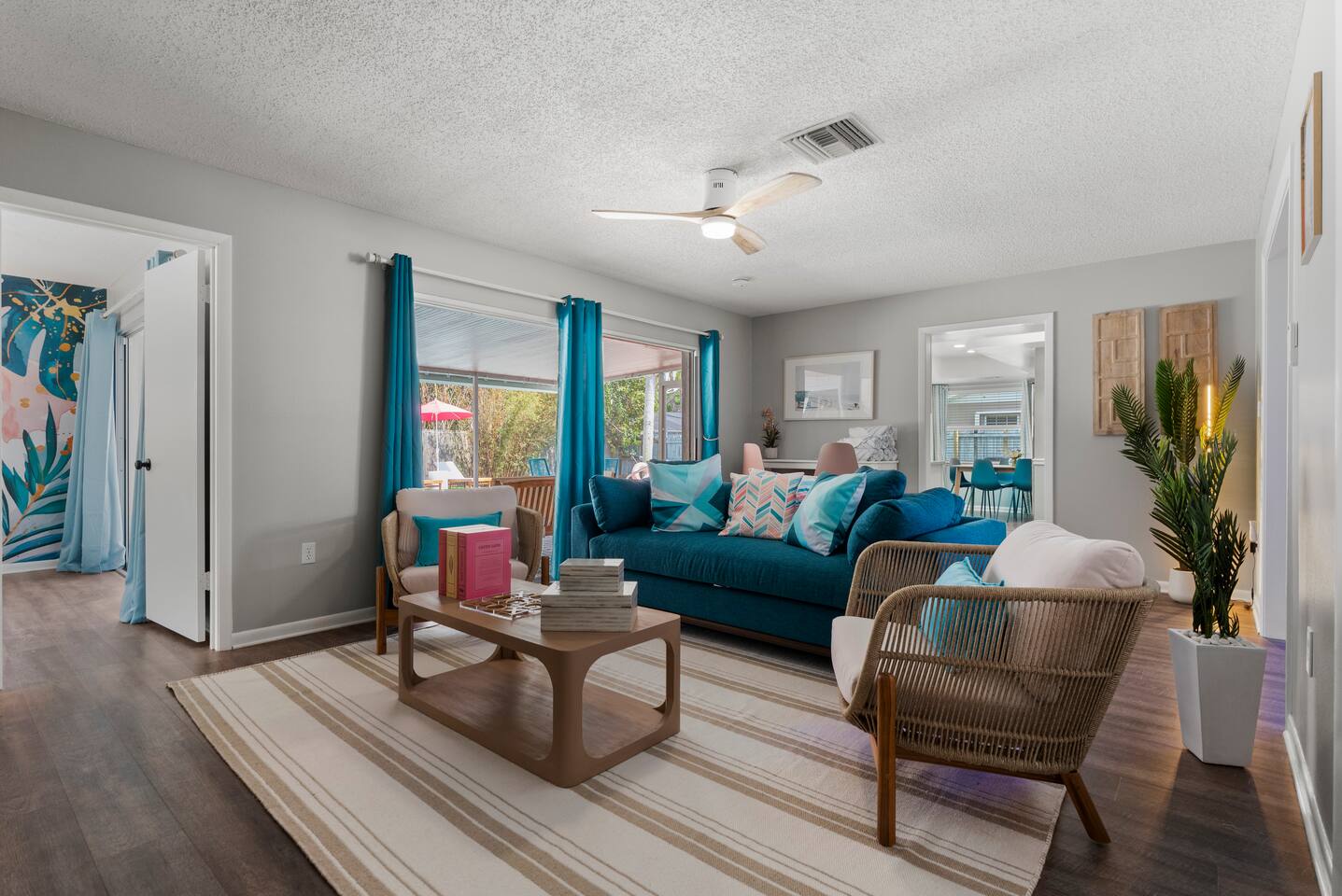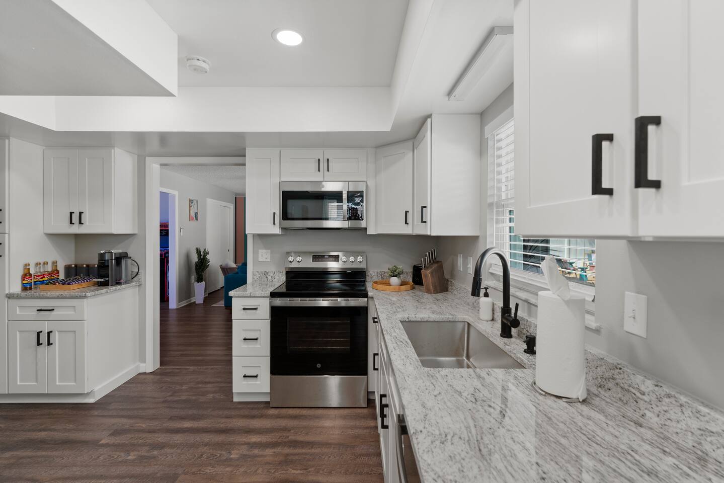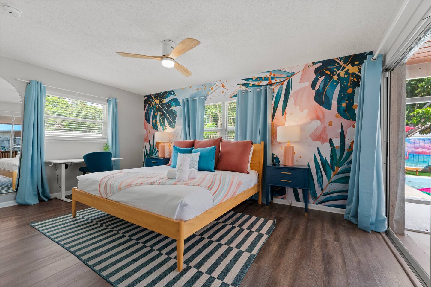 ⭐Outdoor Fun⭐ - Putting green featuring three holes set in comfortable artificial turf - Cozy hammock for that afternoon siesta - Extendable teak dining table with six chairs and umbrella—the perfect spot for an outdoor meal - Heated pool surrounded by six (6) lay-down, adjustable chaise lounges, with three (3) large umbrellas when you need a break from the Sun - Giant inflatable ride-on toucan & flamingo (don’t ya say!) as well as a Big Joe Captain’s Caddie Pool Float to keep those adult drinks from spilling - Fire pit surrounded by six (6) retro, adjustable sling chairs (think “hammock style”) to help you reach peak relaxation - Oversized outdoor games to enjoy, including: Connect 4, Jenga, Ring Toss - Propane BBQ Grill (propane included) with grilling utensils - Covered lanai provides the perfect spot for outdoor snacking at the bar top with two (2) high-top chairs or the 4-piece sofa seating arrangement ⭐Game Room Fun For All⭐ - NBA Jam Deluxe Arcade Machine - 2-Player with Wifi Online Multiplayer available - Ms. Pacman Deluxe Arcade Machine - 14 classic games, with Wifi Online Multiplayer available - 5-ft Air Powered Hockey Table with Electronic Scorer and Sound Effects - 9-ft Shuffleboard Table with 8 Puck Set - Floating Entertainment Center with 65” Roku-enabled TV Complementary ⭐1GB fiber⭐ Wifi is available at Let’s Flamingle. As you walk into the main living room, look for the Wifi Porter on the white counter table (with pink chairs), to quickly and easily connect to Wifi. Wake up with premium, authentic espresso to start your day the right way with the ⭐Nespresso⭐ Vertuo Coffee and Espresso Machine (with Aeroccino Milk Frother)! In as little as 15 minutes, you can craft up your favorite slushies or milkshakes using the ⭐ Ninja SLUSHi ⭐ — great for fun family drinks or cocktails by the pool ⭐The Essentials⭐ - Shampoo, Conditioner, Body Wash - Terra Pure Green Tea mounted in each shower - this line is infused with organic aloe, honey, and olive oil, with a fresh Green Tea fragrance. - Liquid Soap - Public Goods at each sink - Carefully considered high quality, natural and healthy ingredients, including essential oils of orange, geranium, cinnamon, mandarin, nutmeg, petitgrain, rosewood, celery seed, grapefruit and vetiver. - Dish Soap - Extra bed linens, pillows, and blankets - Towels — bath and pool - Hair dryer(s) - Toaster, pots & pans, and all the cooking basics - Mini-bar with cocktail shaker, ice bucket, and bar tool set (bottle opener, muddler, strainer and double-sided jigger) - Super sleek standing desk with powered height adjustment feature with three options: 1) standing, sitting in sleek, ergonomic office chair, or 3) under-desk walking treadmill - Towel rack & folding luggage rack for each bedroom - Travel crib provided for the little ones with fitted sheet (BABYBJORN)